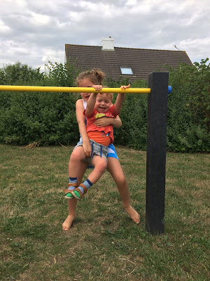 Ernest straalde alvast van contentement toen hij zag dat zijn papa dezelfde trui aanhad. En ook manlief is heel content van het eerste naaisel waarvan hij de bestemmeling is - ruim zeven jaar heeft hij daarop moeten wachten, ocharm.